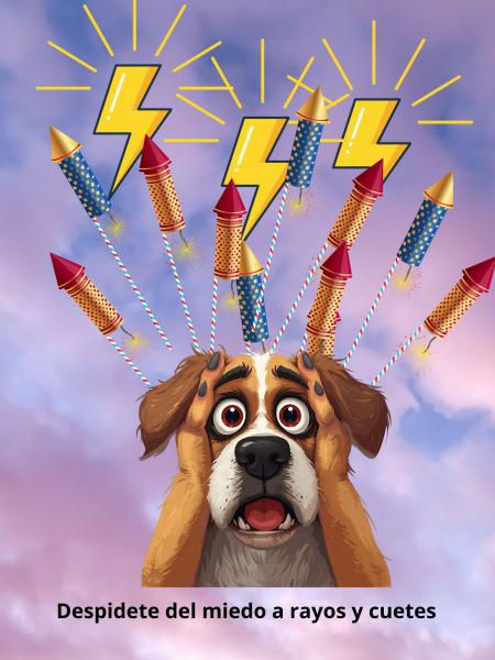 Armonizador para mascotas. Aminora el efecto de rayos y cuetes, dando equilibrio y mayor paz durante la exposicion a los ruidos estridentes de explosiones.